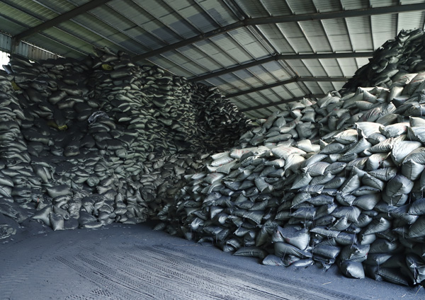 固定碳含量穩(wěn)定,生物質(zhì)氣化爐型結(jié)構(gòu)決定碳化稻殼的固定碳含量在40%—55%之間。